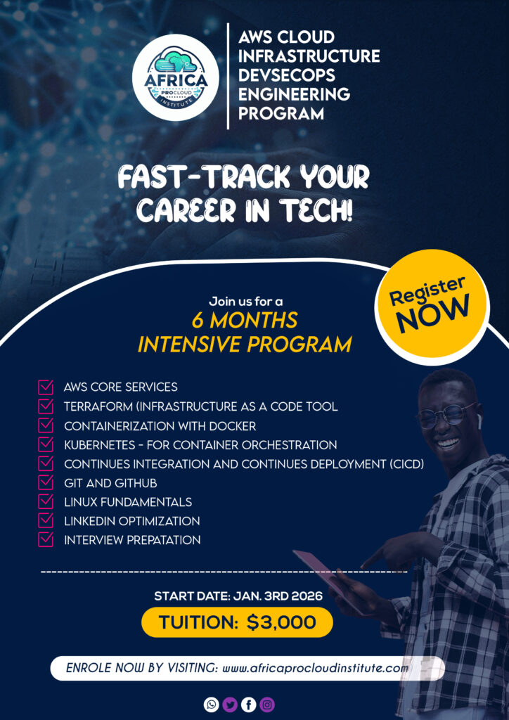 Unlock Your Future in Cloud Engineering! ๐ŸŒ Join Universal AI & Cloud Engineering Institute’s 6-Month AWS Cloud & DevOps Program. Master AWS, Terraform, Kubernetes, Docker, and more through flexible online learning. ๐Ÿ–ฅ๏ธ Start Date: Jan 4, 2024. ๐Ÿš€ Limited seatsโ€”Enroll now!